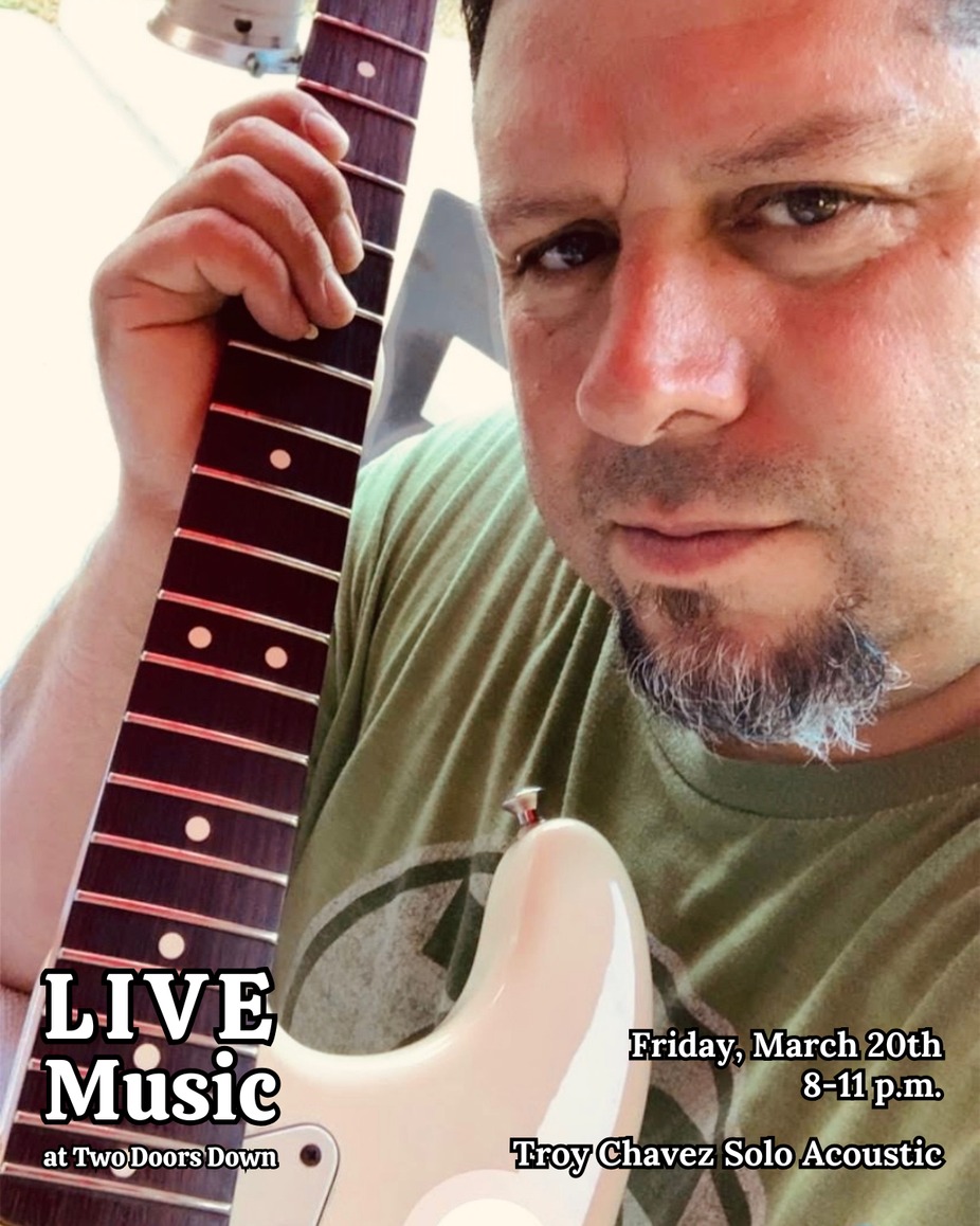 Troy Chavez returns to the Two Doors Down stage on Friday, March 20th. Join us for great live music, food, and drinks! (No cover charge.)