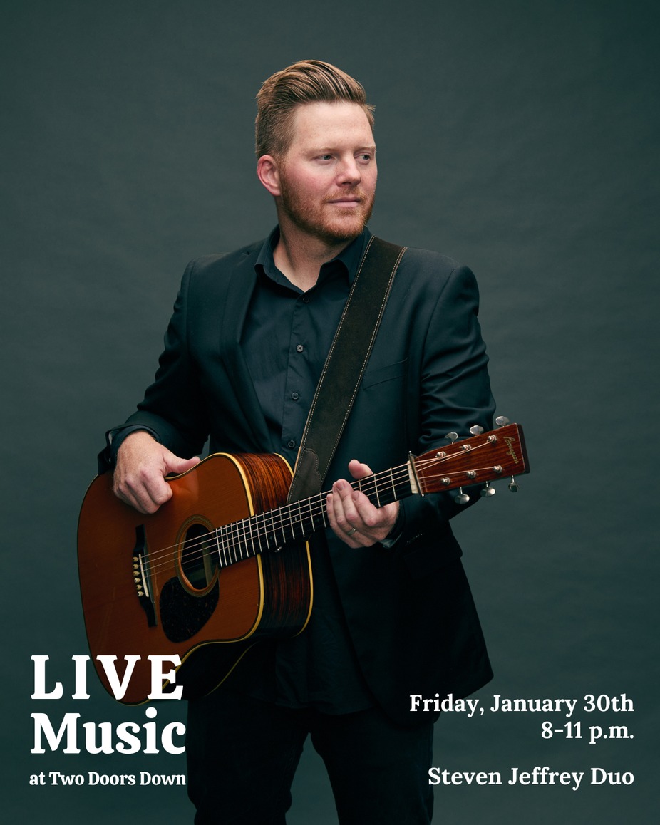 Steven Jeffrey returns to the Two Doors Down stage on Friday, January 30th. Join us for great live music, food, and drinks! (No cover charge.)