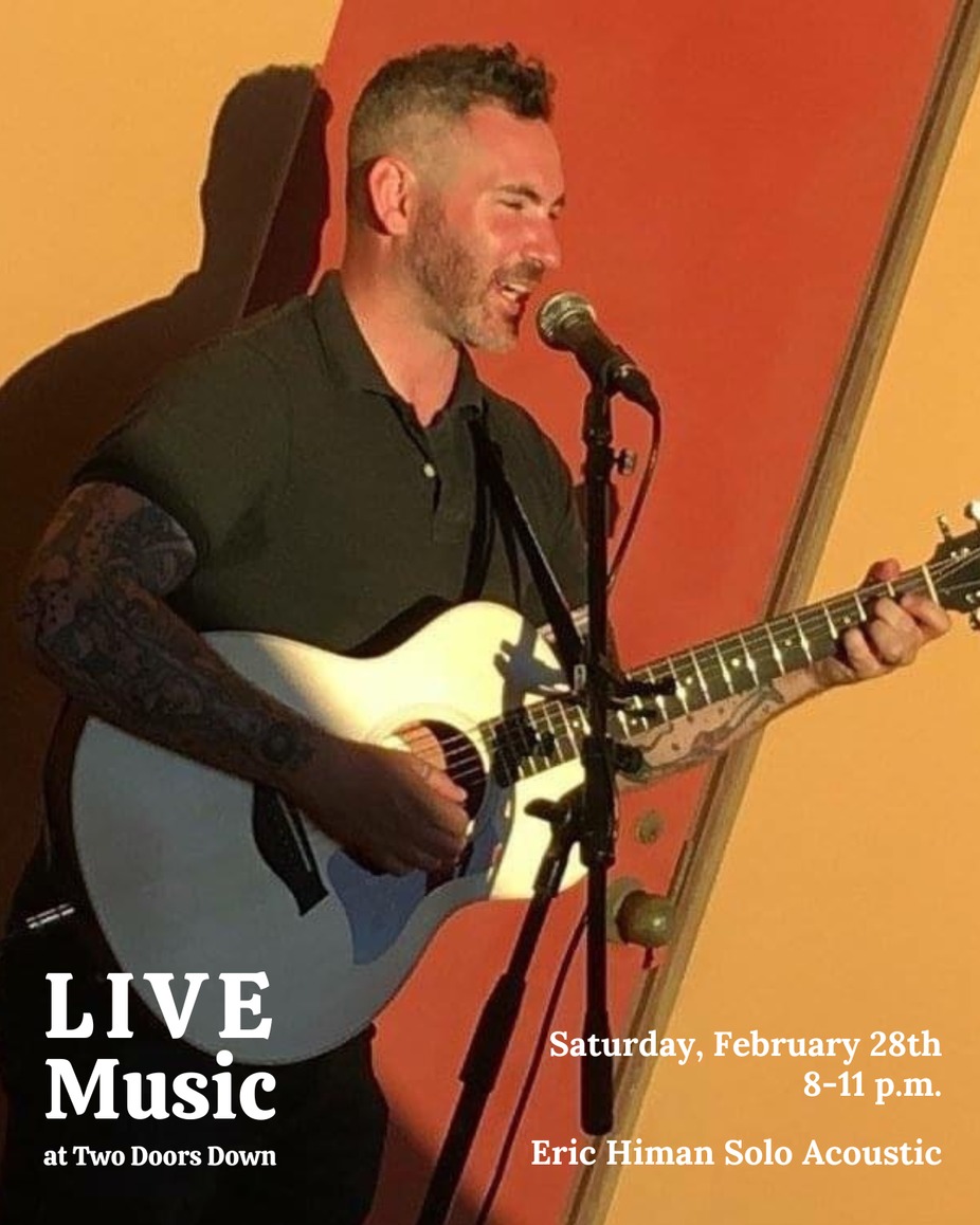 Eric Himan returns to the Two Doors Down stage on Saturday, February 28th. Join us for great live music, food, and drinks! (No cover charge.)