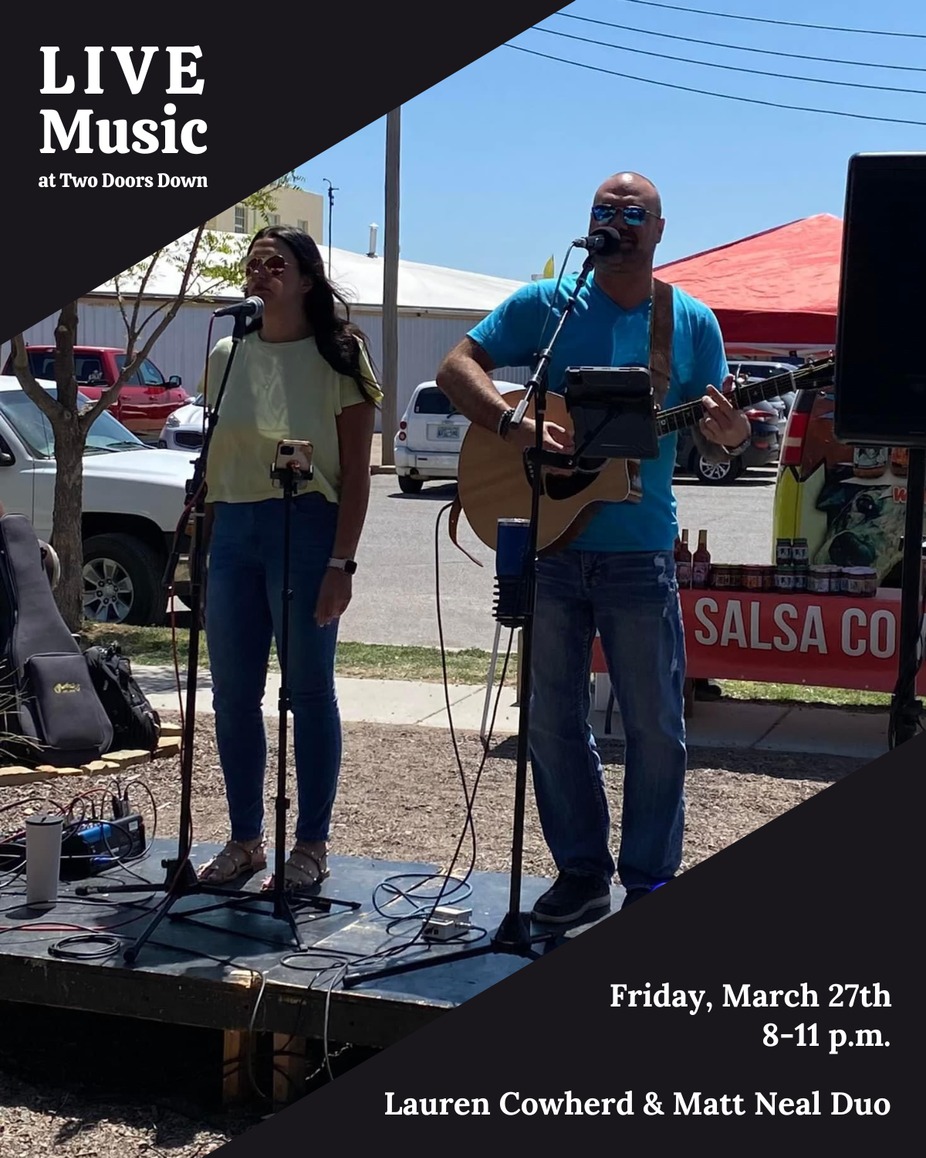 Lauren Cowherd and Matt Neal return to the Two Doors Down stage on Friday, March 27th. Join us for great live music, food, and drinks! (No cover charge.)