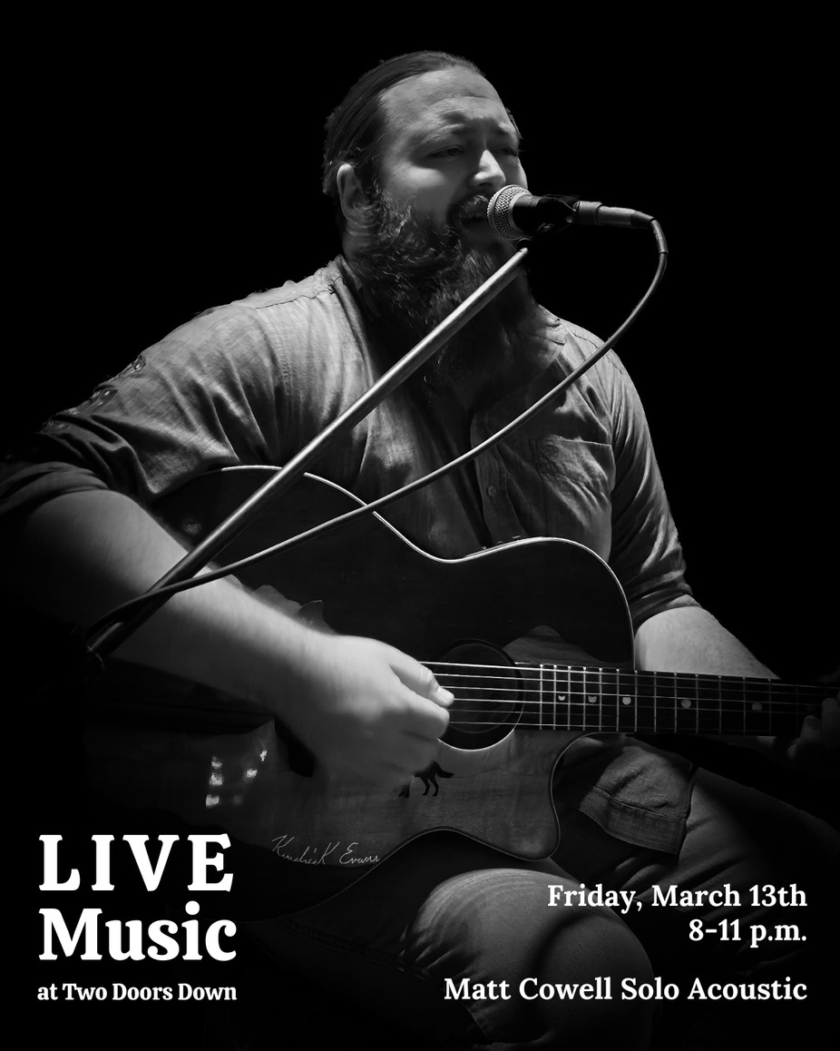 Matt Cowell returns to the Two Doors Down stage on Friday, March 13th. Join us for great live music, food, and drinks! (No cover charge.)