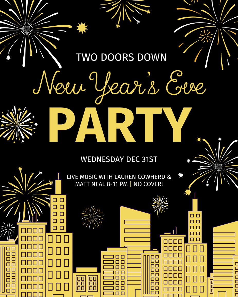 Say goodbye to 2025 with us! We’ll be serving up the usual great food and drinks all night, with musical guests Lauren Cowherd and Matt Neal taking the stage from 8-11. No cover charge!