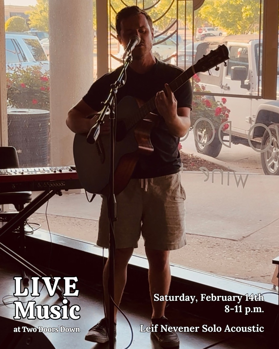 Leif Nevener returns to the Two Doors Down stage on Saturday, February 14th. Join us for great live music, food, and drinks! (No cover charge.)